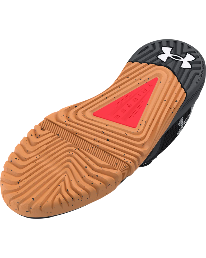 Embrace the pinnacle of athletic precision with this exceptional footwear, meticulously crafted to elevate your performance. The UA WARP upper, an exquisite tapestry of TPU mesh, envelops your foot in unparalleled support and breathability, while the dual-density midsole harmonizes softness and firmness for an exquisite underfoot experience. The updated UA TriBase™ design encourages natural motion, fostering a seamless connection to the ground, and the full-rubber outsole ensures resilience and grip, gracefully accommodating the most dynamic of movements. Experience the artistry of athletic excellence, where every step is an affirmation of your commitment to mastery.